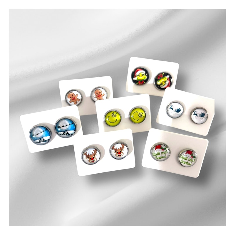 Die Stecker haben einen Durchmesser von 1cm, Winterwelt blau und Grinch mit Mütze 1,2cm, und werden mit Verschluss-Schräubchen geliefert.